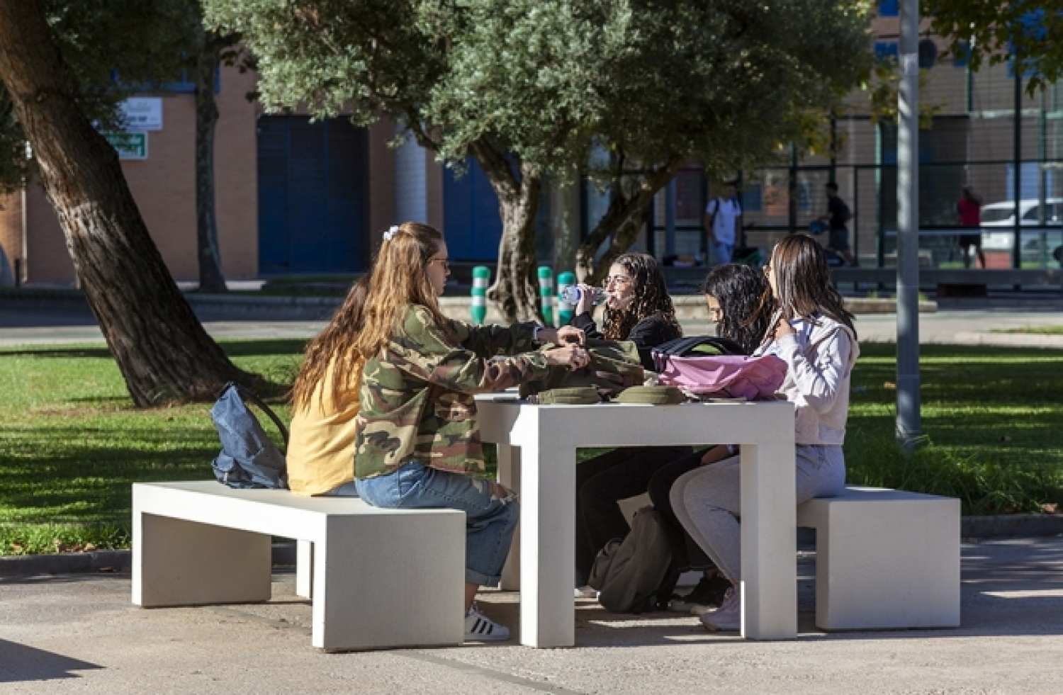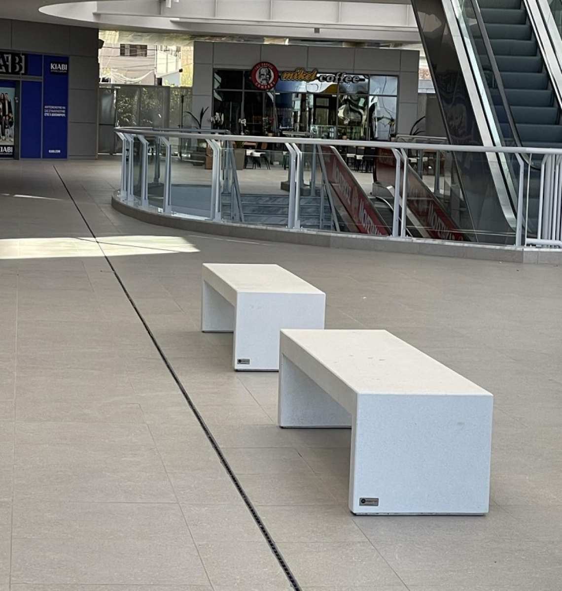 • beton arhitectural, cu agregate expuse din marmura colorata, zdrobita,  finisat hidrofugat (beton cu timbru verde, cu -35% emisii de CO2 fata de betonul obișnuit), cu rezistenta inalta la apa si radiatii UV.