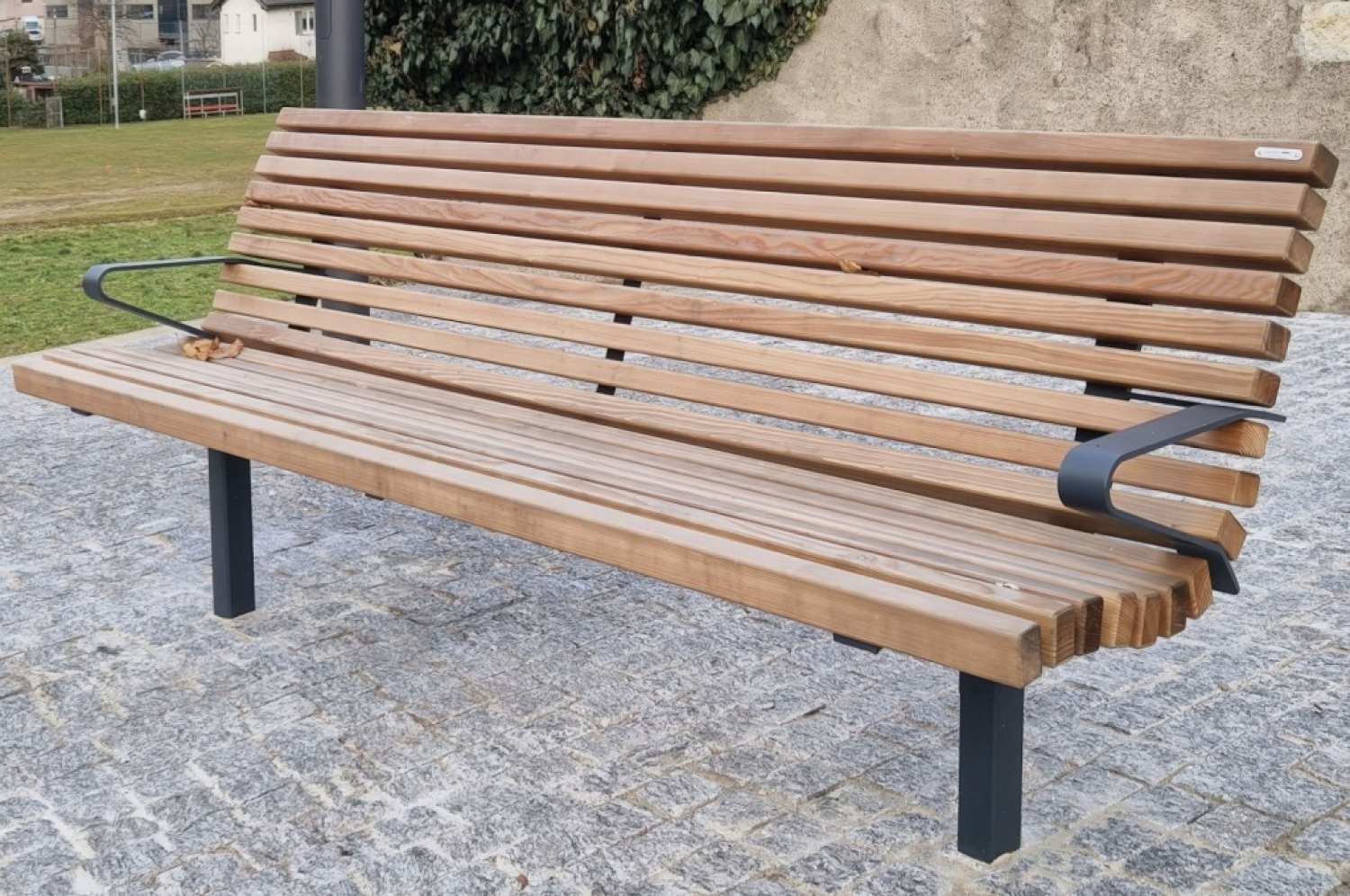 • MEYRIN 230 banca stradala cu spatar, cu sau fara cotiere laterale : L 2300 x 660 x H 860 x h sezut 440 mm, greutate 115 kg;