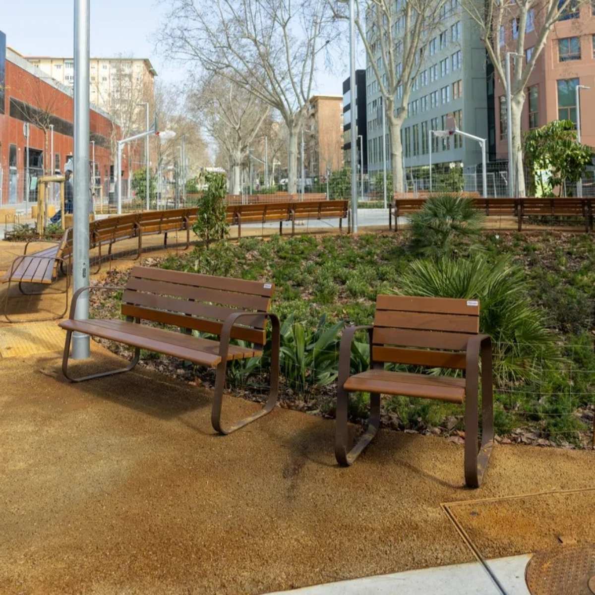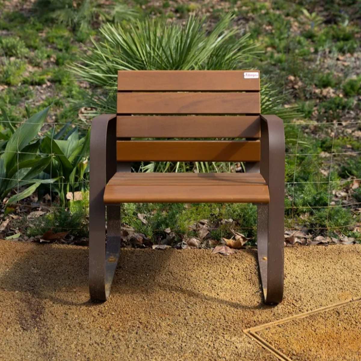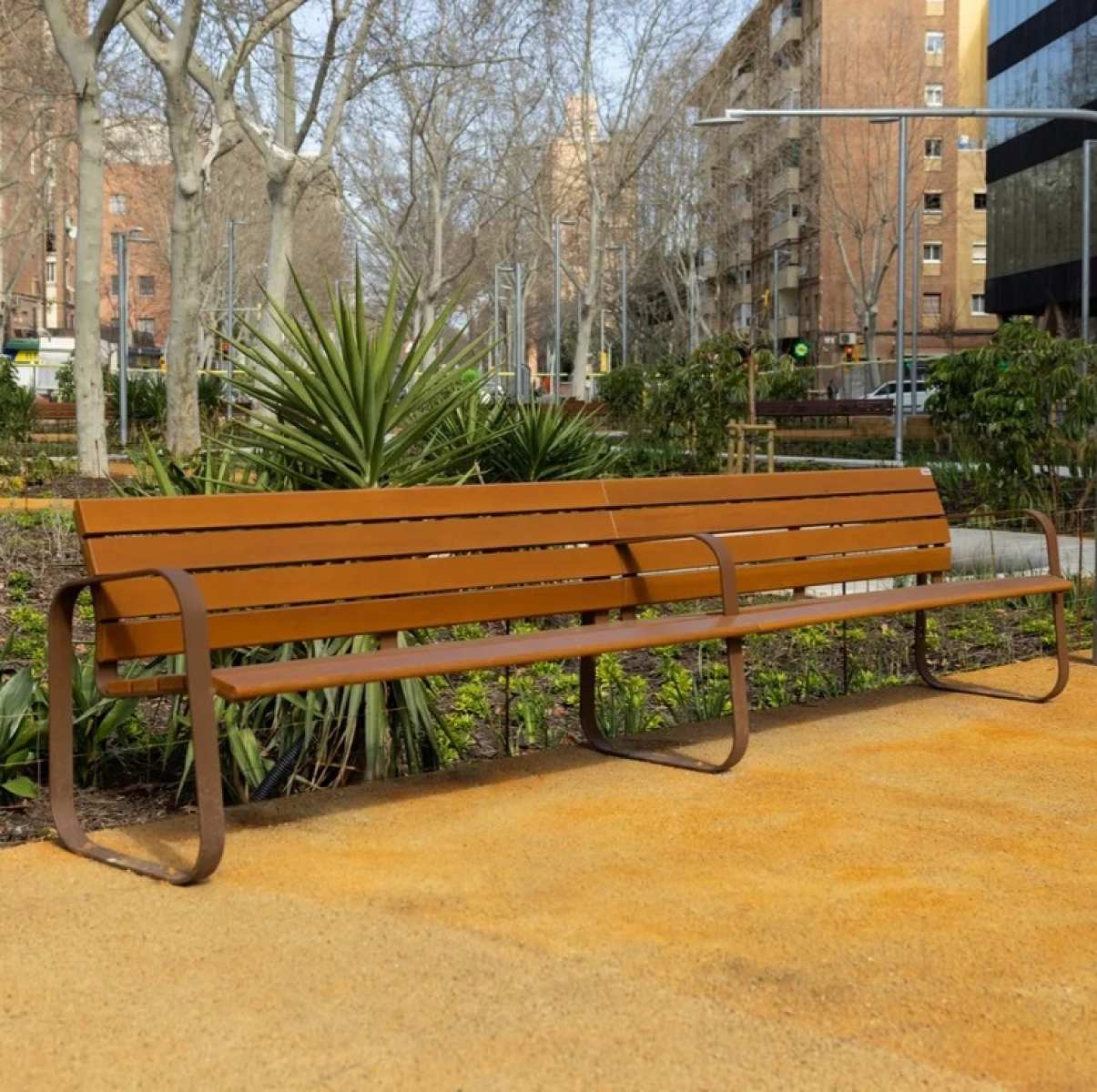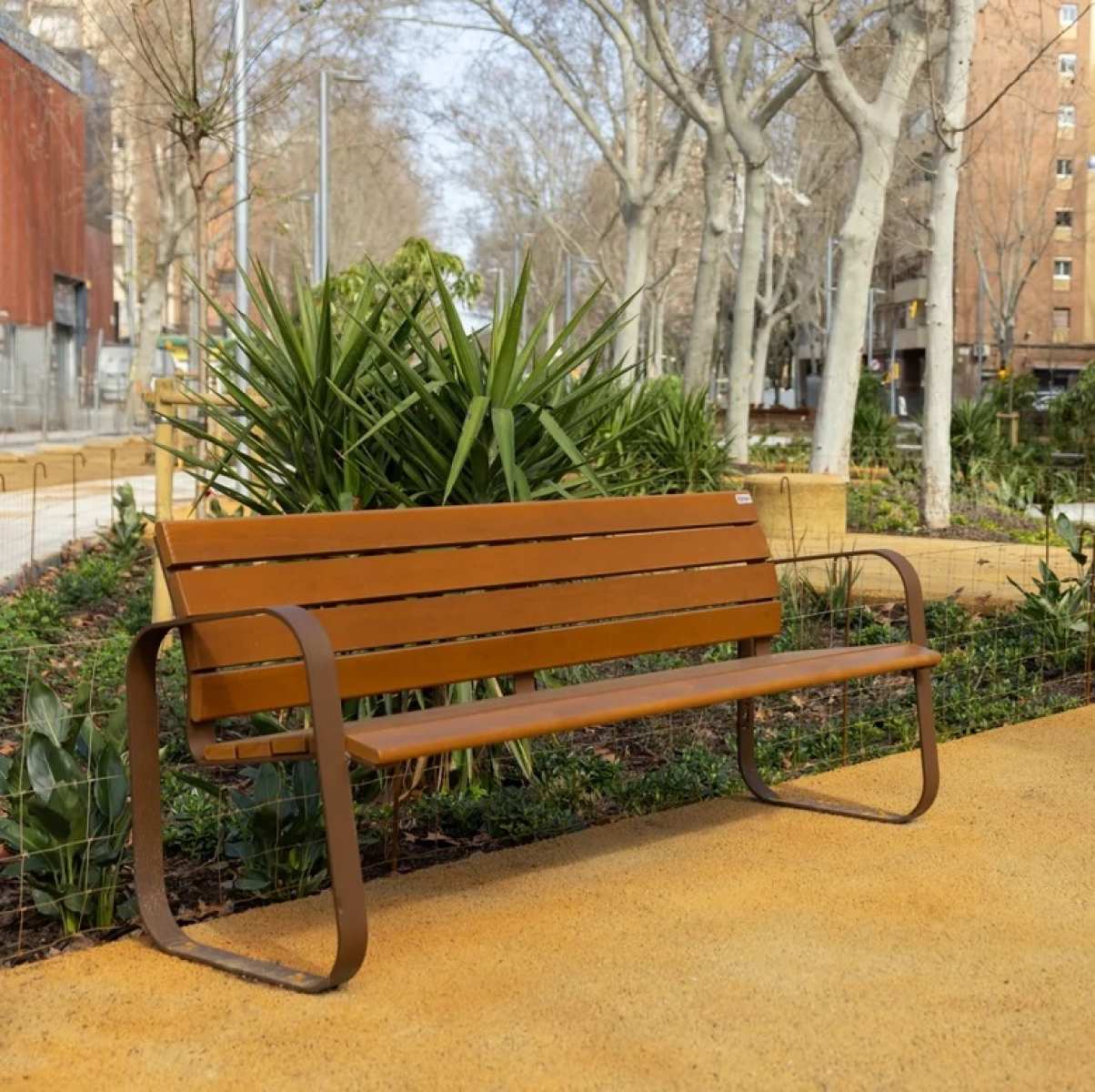 Banca stradala din lemn exotic si otel