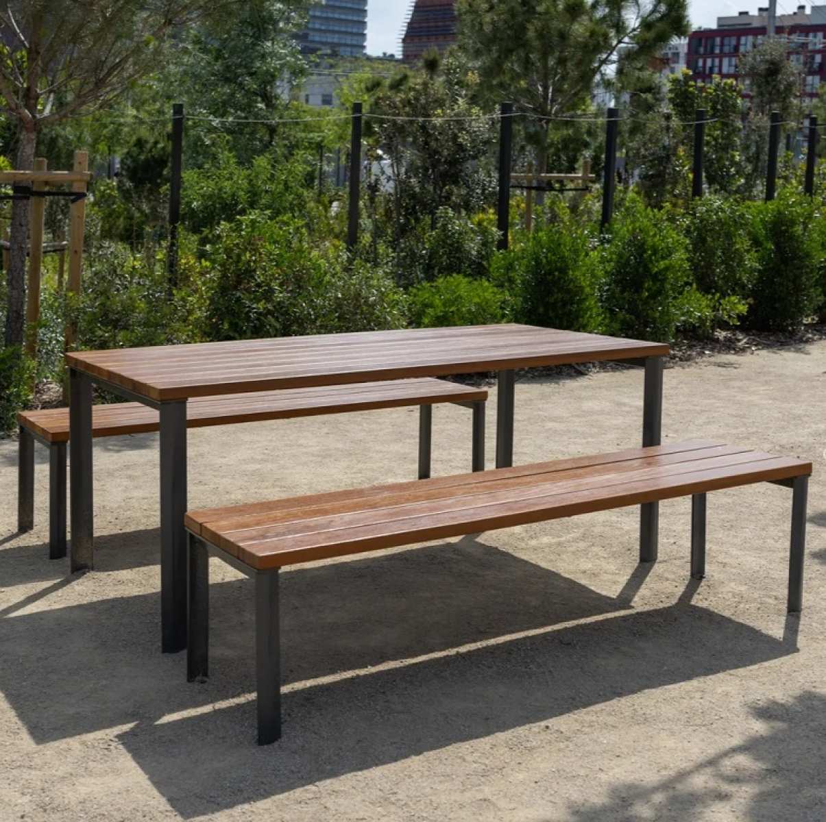 Banca stradala fara spatar din otel si lemn exotic MINIM10