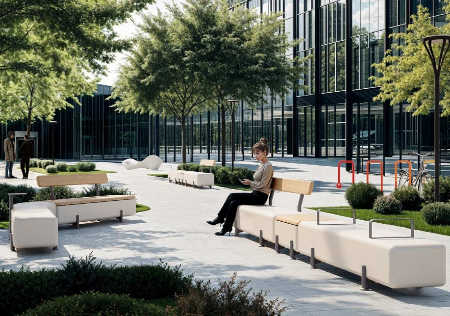 Banca stradala modulara din mozaic de granit / marmura PDM si lemn exotic - colectia SOFA