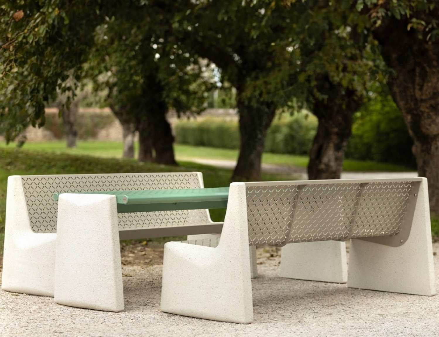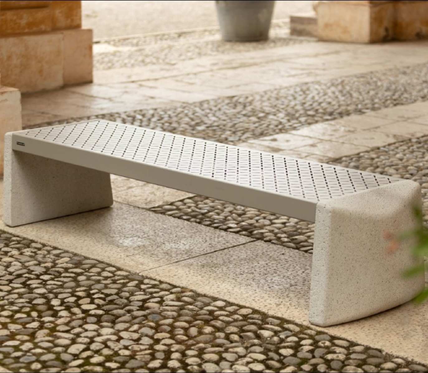 Banci stradale din otel, lemn exotic si mozaic de granit Colectia PDM ME40