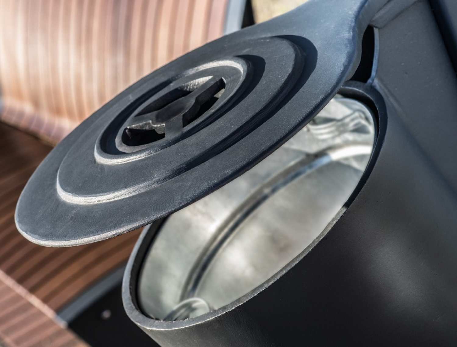Dotari disponibile: scrumiera metalica integrata in capac, executata din otel inoxidabil.