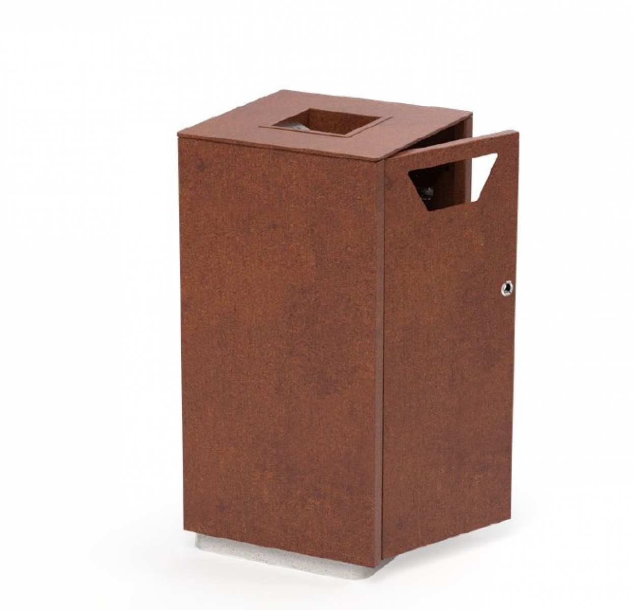 SPENCER CPQ-A (patrat), dotat cu scrumiera si placuta metalica din otel inoxidabil periat : capacitate 85 litri, L 395 x 395 x H 790 mm, greutate 50 kg.