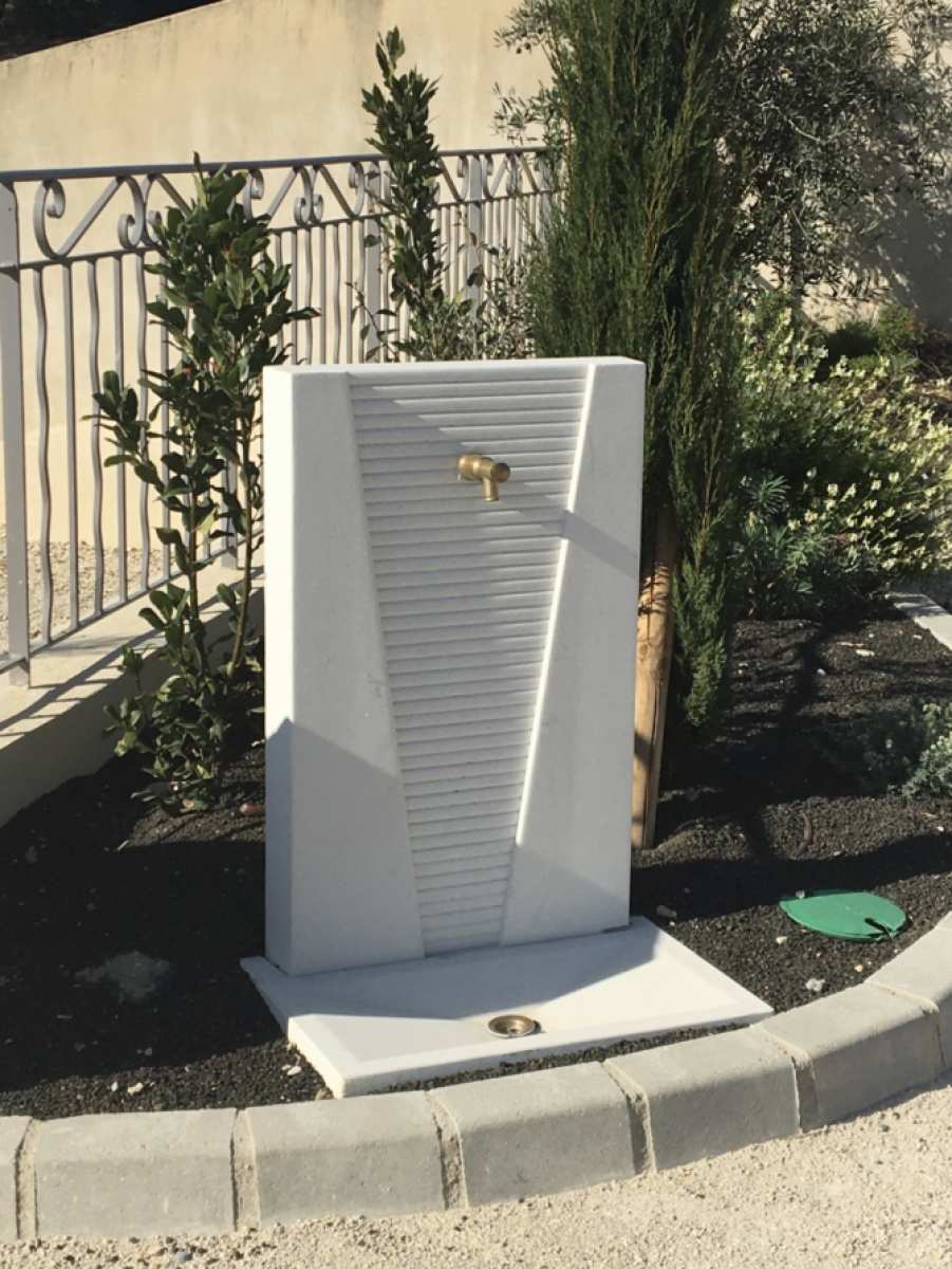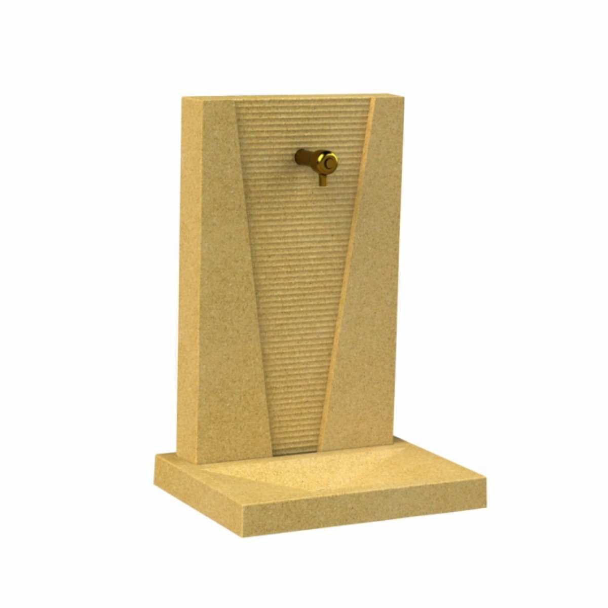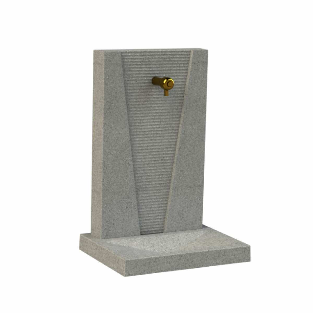 • corp central, panou frontal vertical si baza executate din beton arhitectural cu agregate expuse din marmura colorata, zdrobita,  finisat hidrofugat (beton cu timbru verde, cu -35% emisii de CO2 fata de betonul obișnuit), cu rezistenta inalta la apa si radiatii UV.