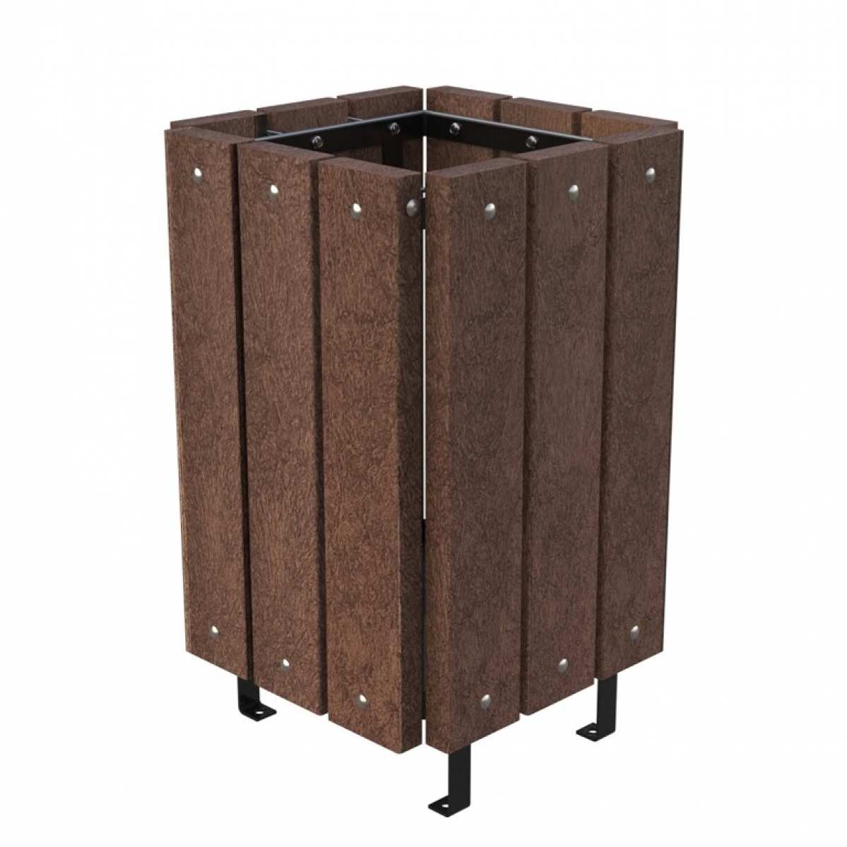 • rigle din plastic 100% reciclat, culoare maro, polimer reciclat mixt cu origine domestică post-consum, recuperat din sectoarele industrial și agricol