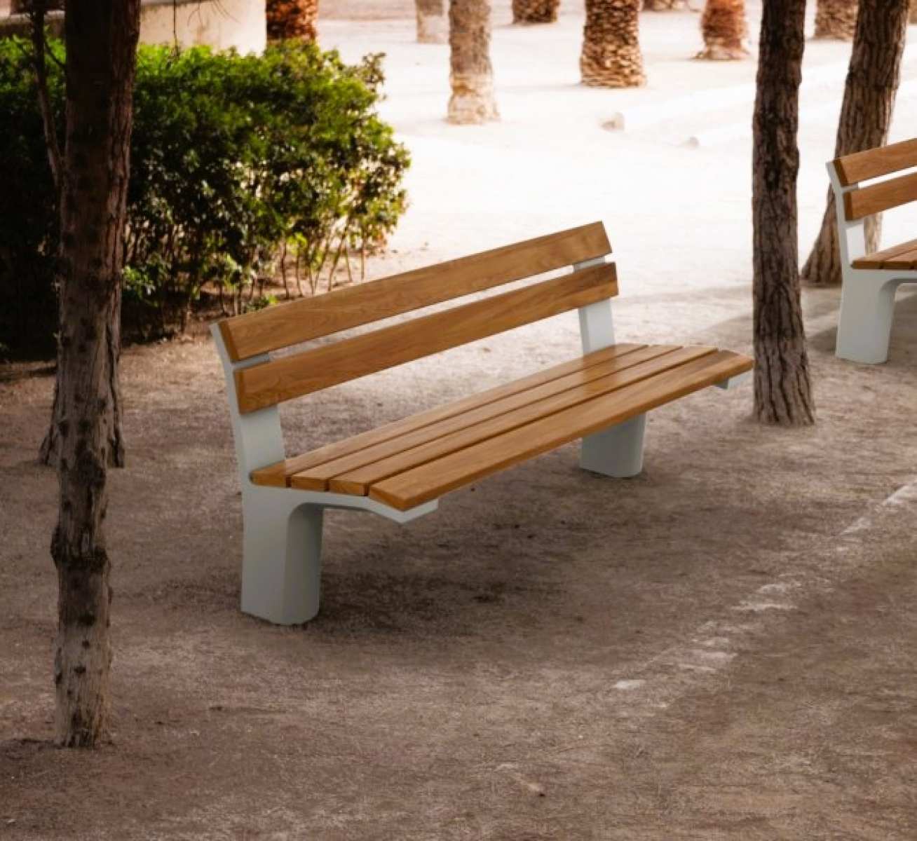 Banca stradala cu spatar, din beton arhitectural si lemn de pin sau compozit, model UNIT