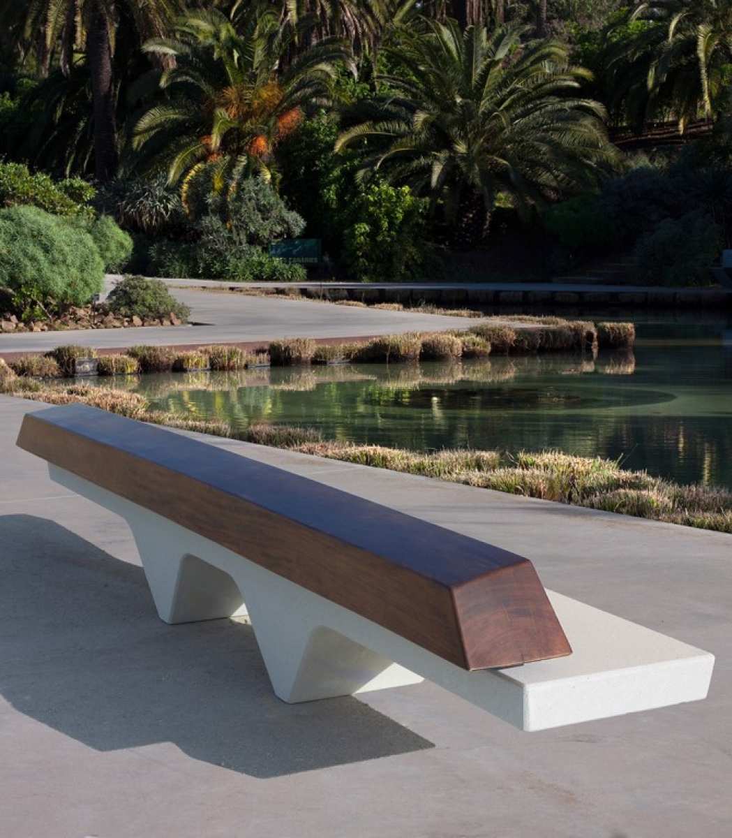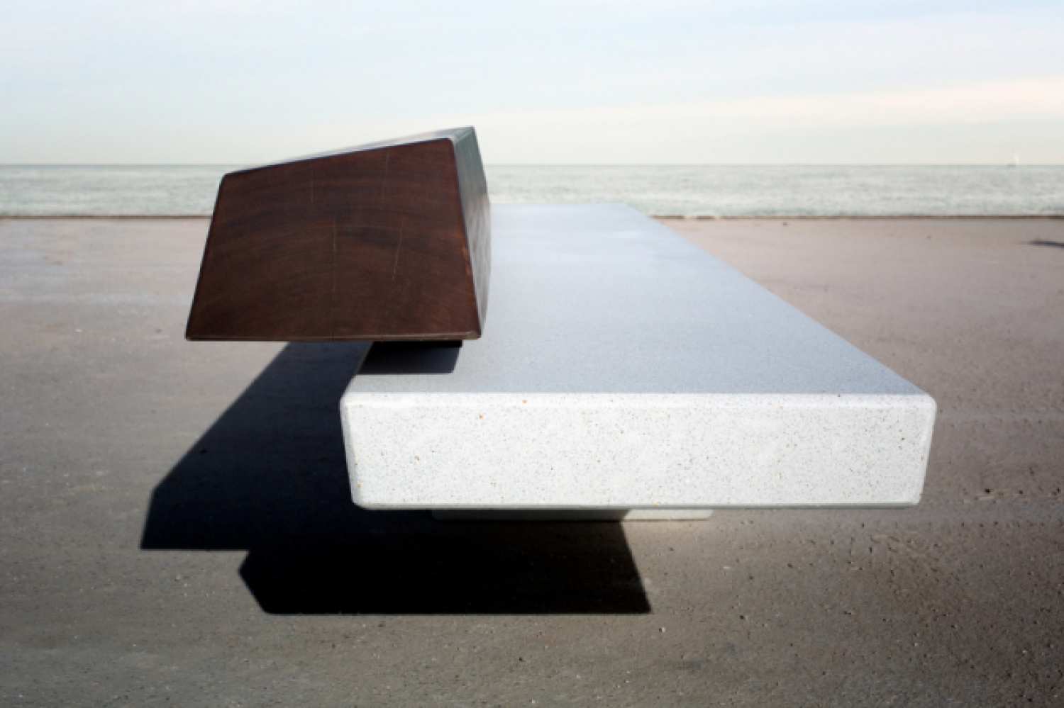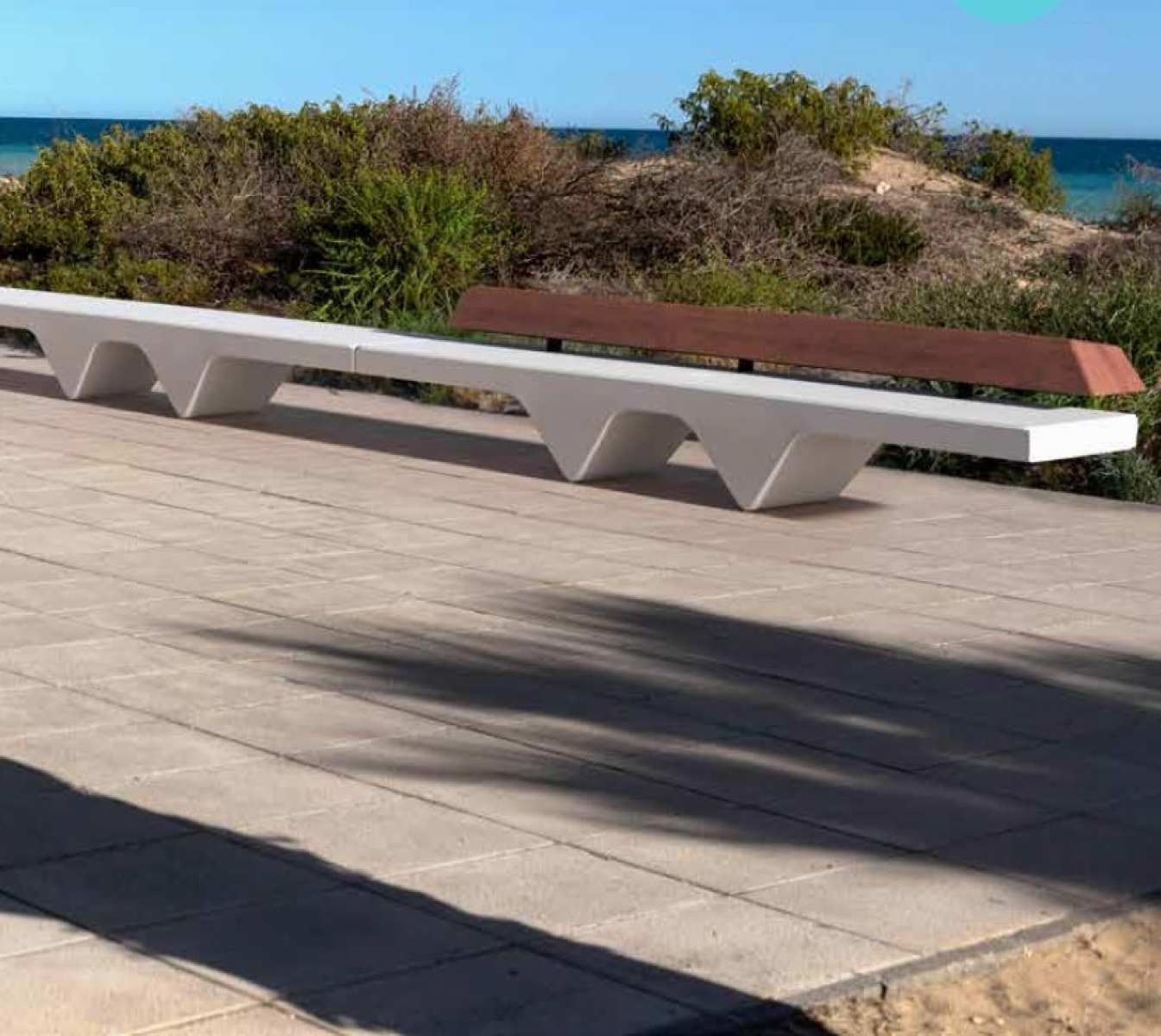 Banca stradala din beton arhitectural si lemn exotic RIPPLE