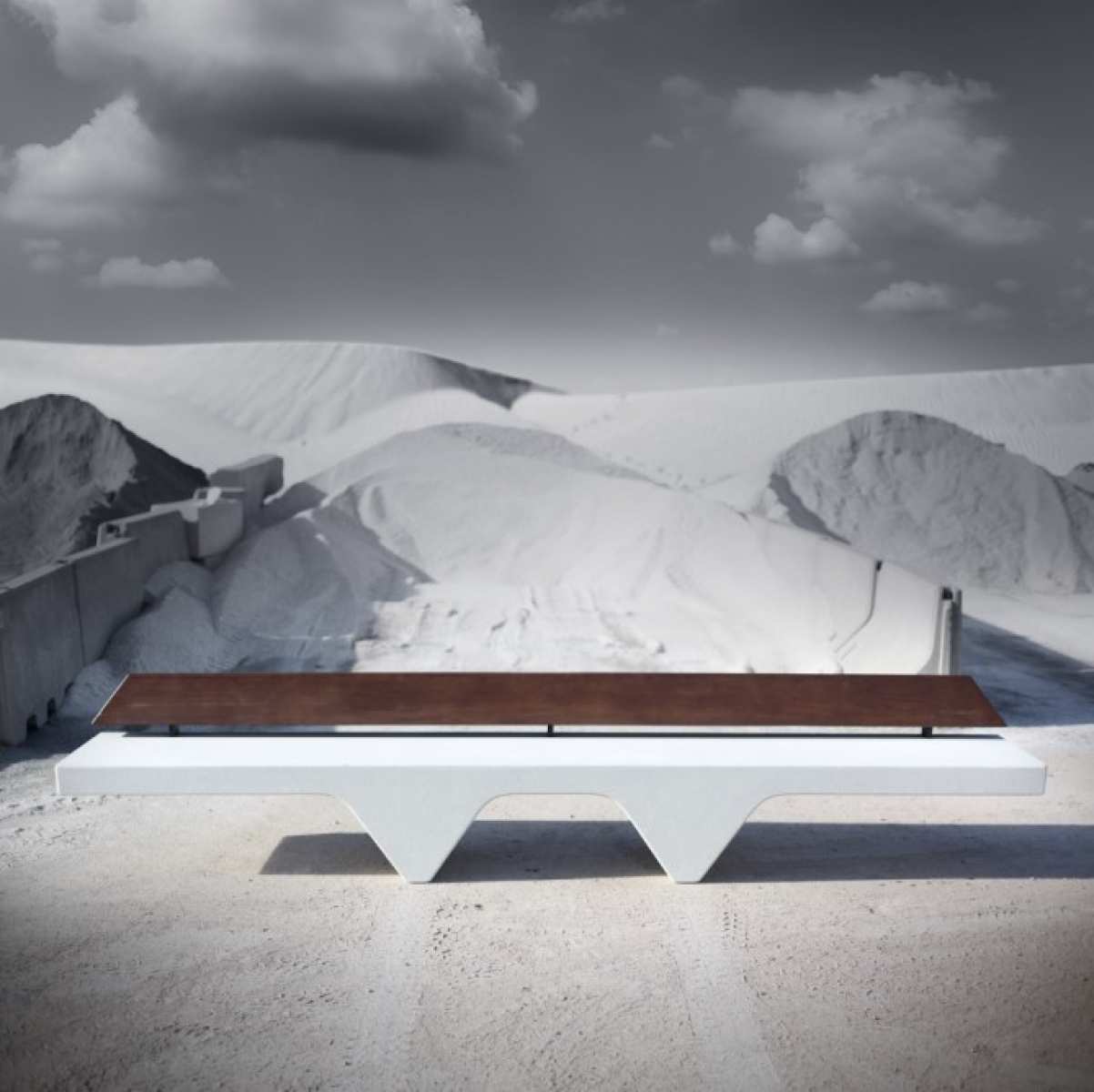 Banca stradala din beton arhitectural si lemn exotic Colectia RIPPLE