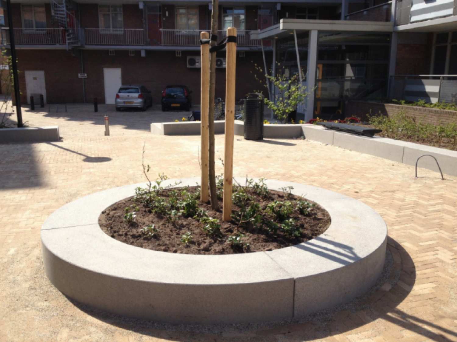 beton arhitectural, cu agregate expuse din marmura colorata, zdrobita, finisat hidrofugat (beton cu timbru verde, cu -35% emisii de CO2 fata de betonul obișnuit), cu rezistenta inalta la apa si radiatii UV.