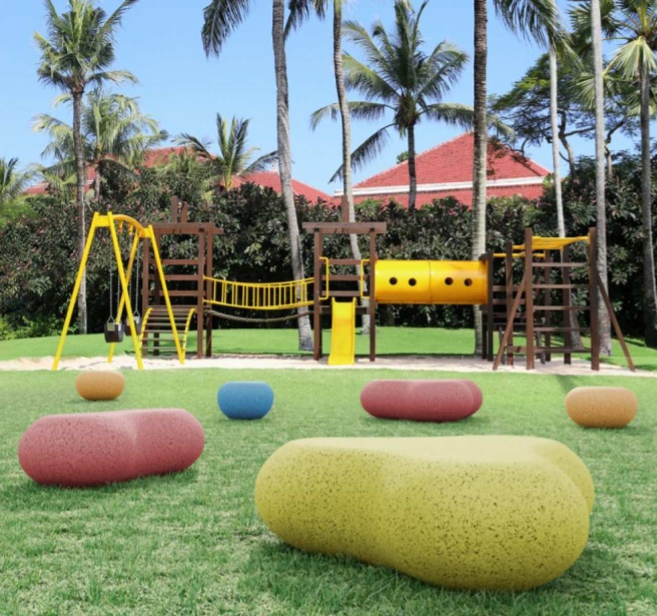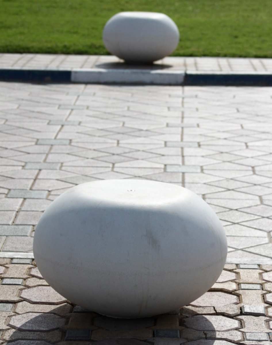 beton arhitectural, cu agregate expuse din marmura colorata, zdrobita, finisat hidrofugat (beton cu timbru verde, cu -35% emisii de CO2 fata de betonul obișnuit), cu rezistenta inalta la apa si radiatii UV.