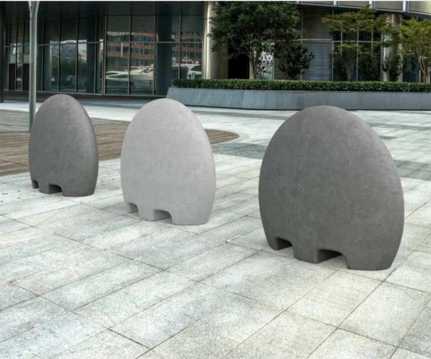 beton arhitectural, cu agregate expuse din marmura colorata, zdrobita, finisat hidrofugat (beton cu timbru verde, cu -35% emisii de CO2 fata de betonul obișnuit), cu rezistenta inalta la apa si radiatii UV.