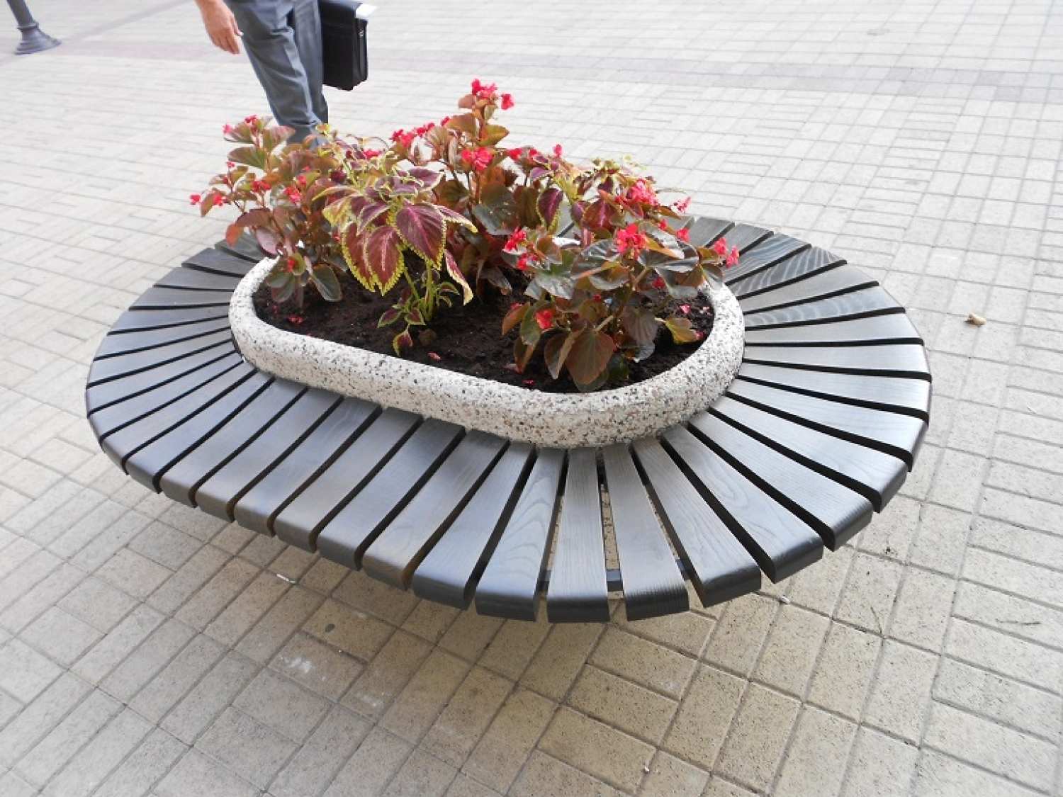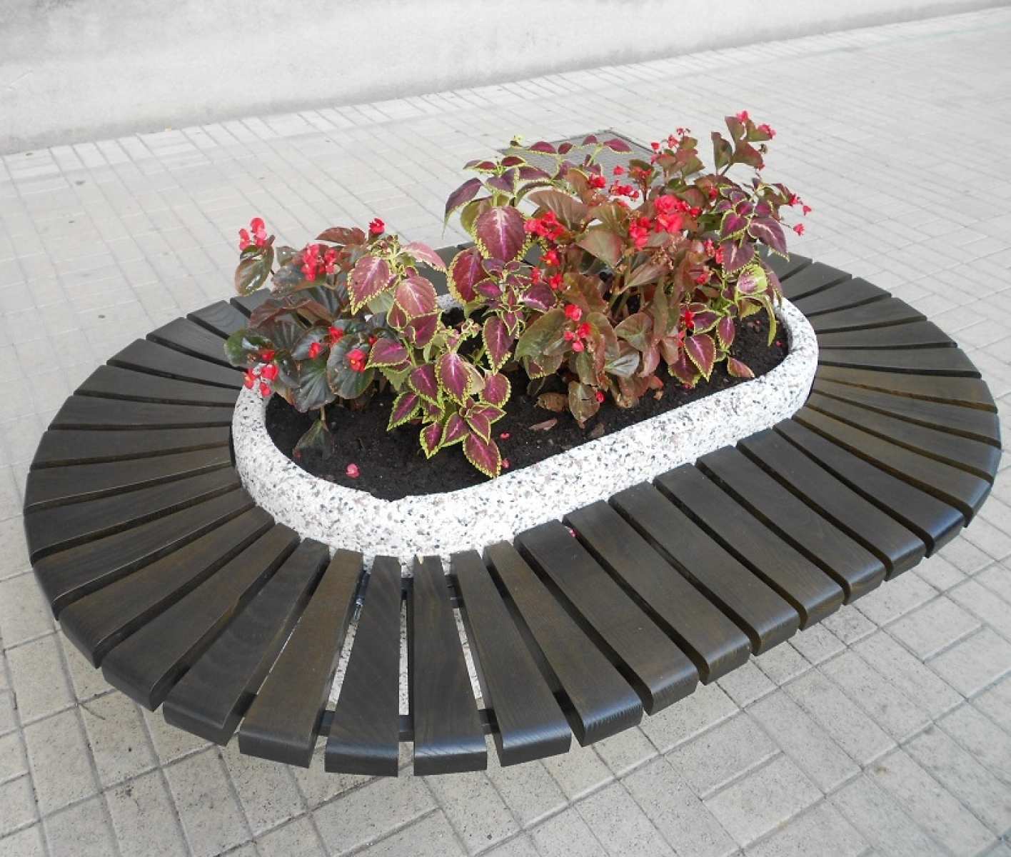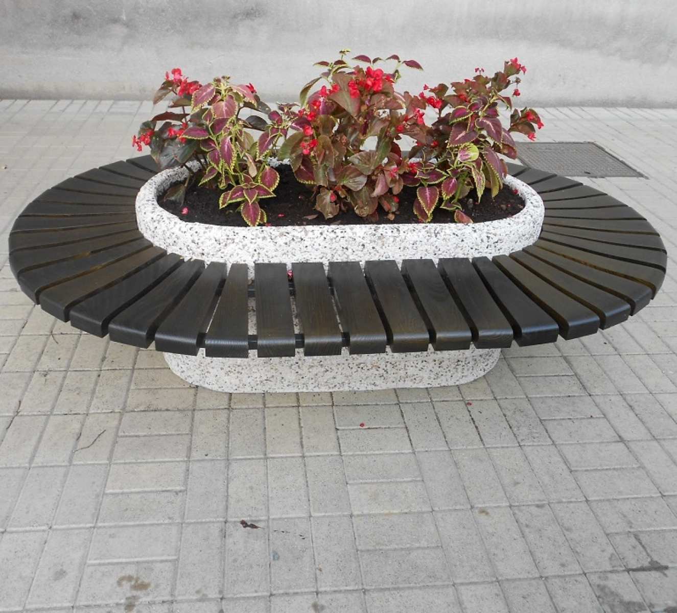 Jardiniera stradala din mozaic terrazzo cu banca circulara GADB 010