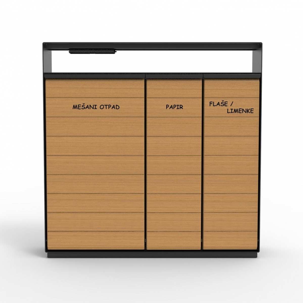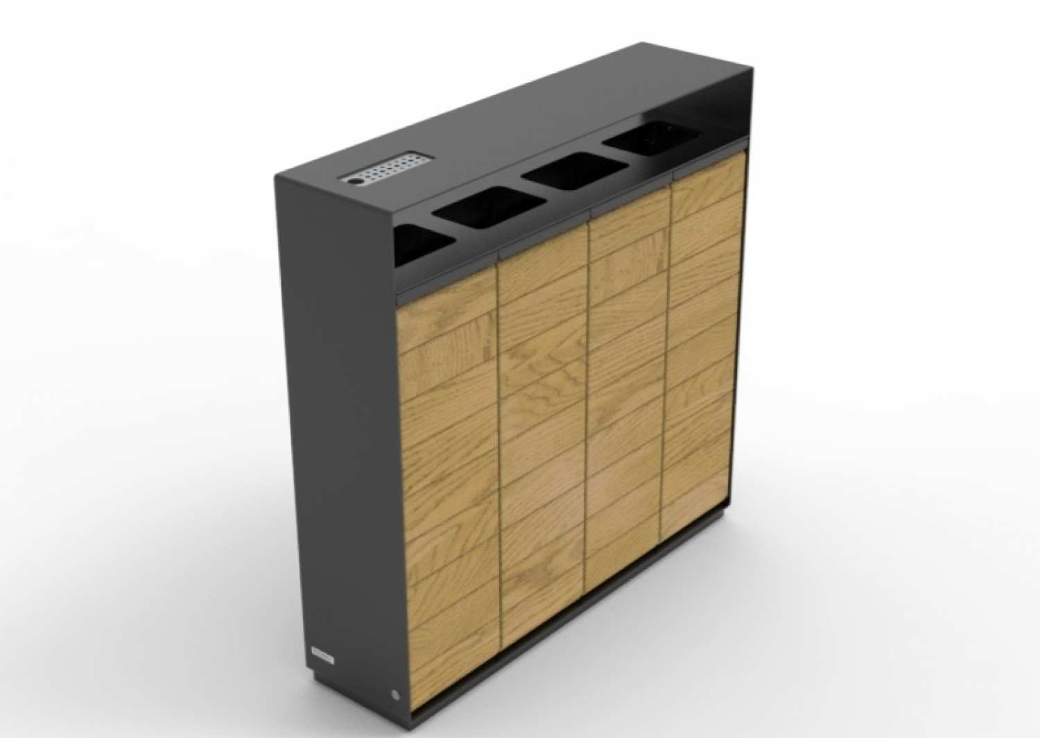 Cos stradal pentru colectare selectiva din otel si lemn exotic model REKAST010-2