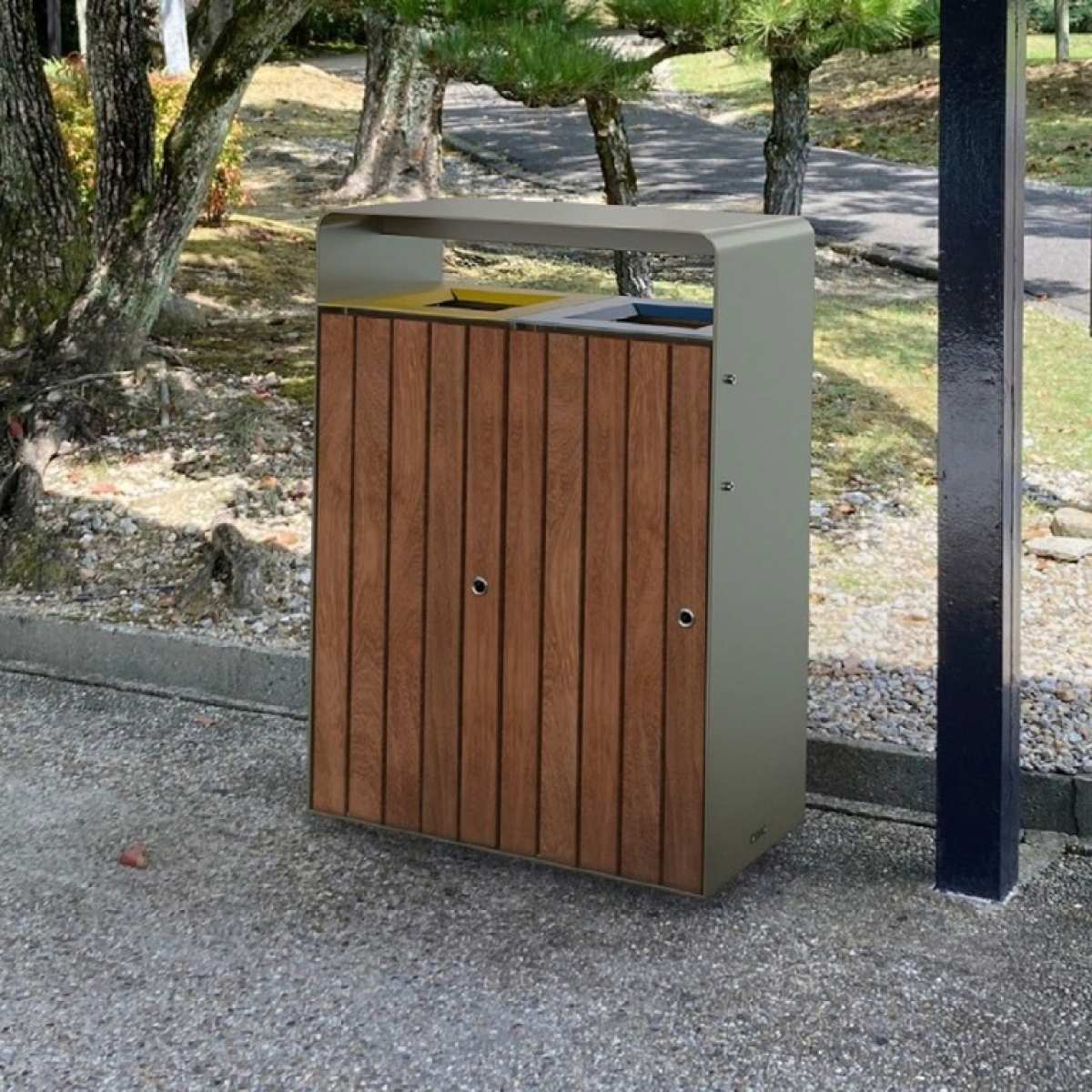 Cos stradal de gunoi pentru colectare selectiva, cu lemn exotic,