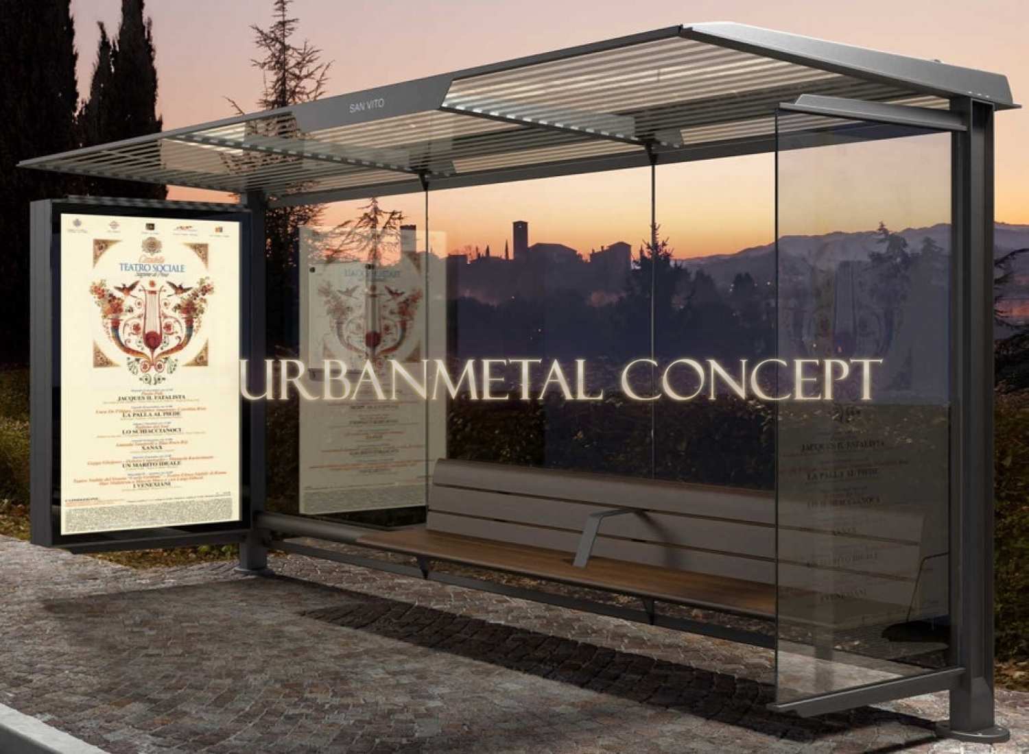 Statie de autobuz cu panou publicitar model PENSILIS