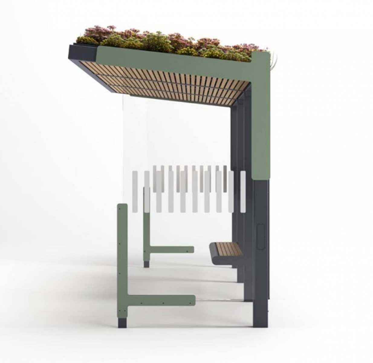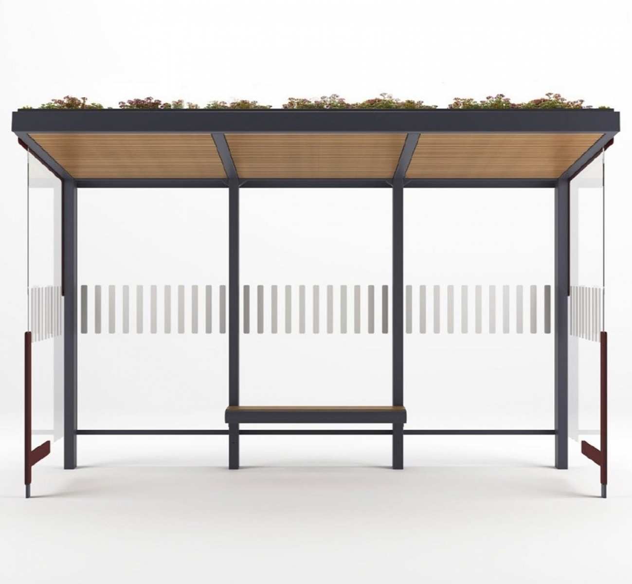 • ATLAS 3 MODULE : L 4170 x 1935 x H 2640 (+200) mm, inaltime banca h 420 mm; statia este dotata cu banca stradala si plafon executate din lemn exotic de esenta tropicala, fiind pregatita pentru dotare ulterioara cu elemente vegetale.