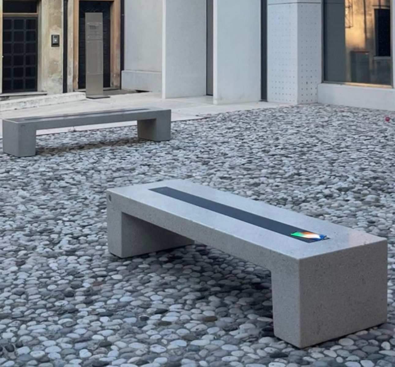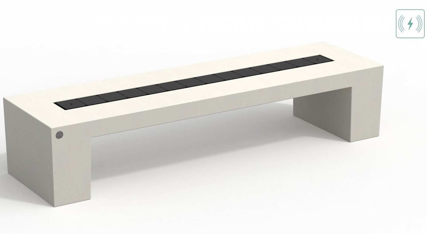 Banca este prevazuta la partea de sezut, dispus central, cu PANOU SOLAR fotovoltaic, integrat, avand caracteristicile: